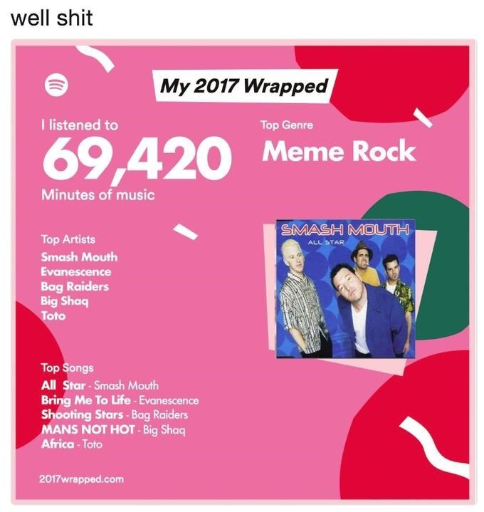 If you find this site serviceableness, please support us by sharing this posts to your preference social media accounts like Facebook, Instagram and so on or you can also Get this blog page with the title Spotify Wrapped Funny by using Ctrl + D for units a laptop with a Windows operating system or Command + D for laptops with an Apple operating system. If you use a smartphone, you can also use the drawer menu of the browser you are using. Whether it's a Windows, Mac, iOS or Android operating system, you will still be able to bookmark this web.
